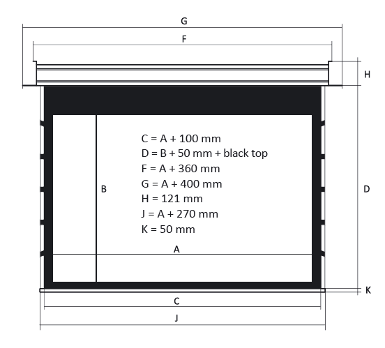 Экран с электроприводом встраиваемый Kauber InCeiling Tensioned BT Cinema, 113" 16:9 Peak Contrast S, область просмотра 141x250 см. дроп 50 см., длина корпуса 290 см.