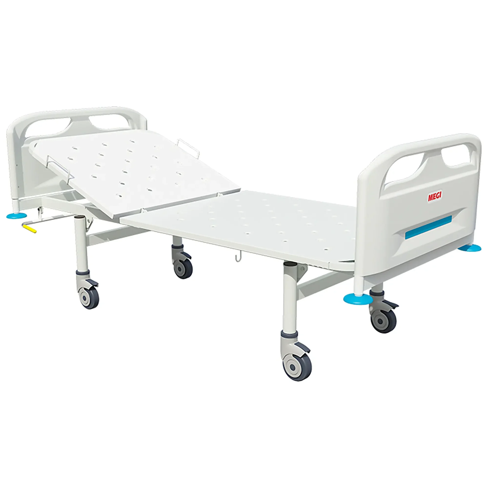 Кровать общебольничная МСК-4101 с регулировкой подголовника на пневмопружинах предназначена для осуществления общебольничного ухода за пациентами во всех отделениях стационаров лечебно-профилактических учреждений.