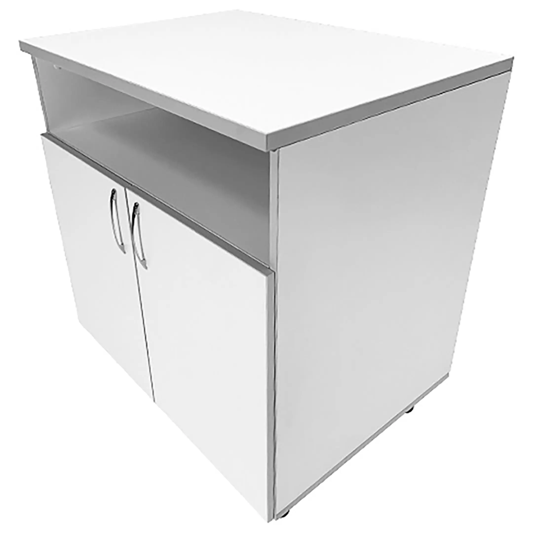 - Многофункциональное пространство для хранения: Под столешницей тумбы расположены большая ниша и вместительное отделение с двумя распашными дверками и полкой внутри. Это позволяет удобно организовать хранение различной медицинской аппаратуры и предметов.