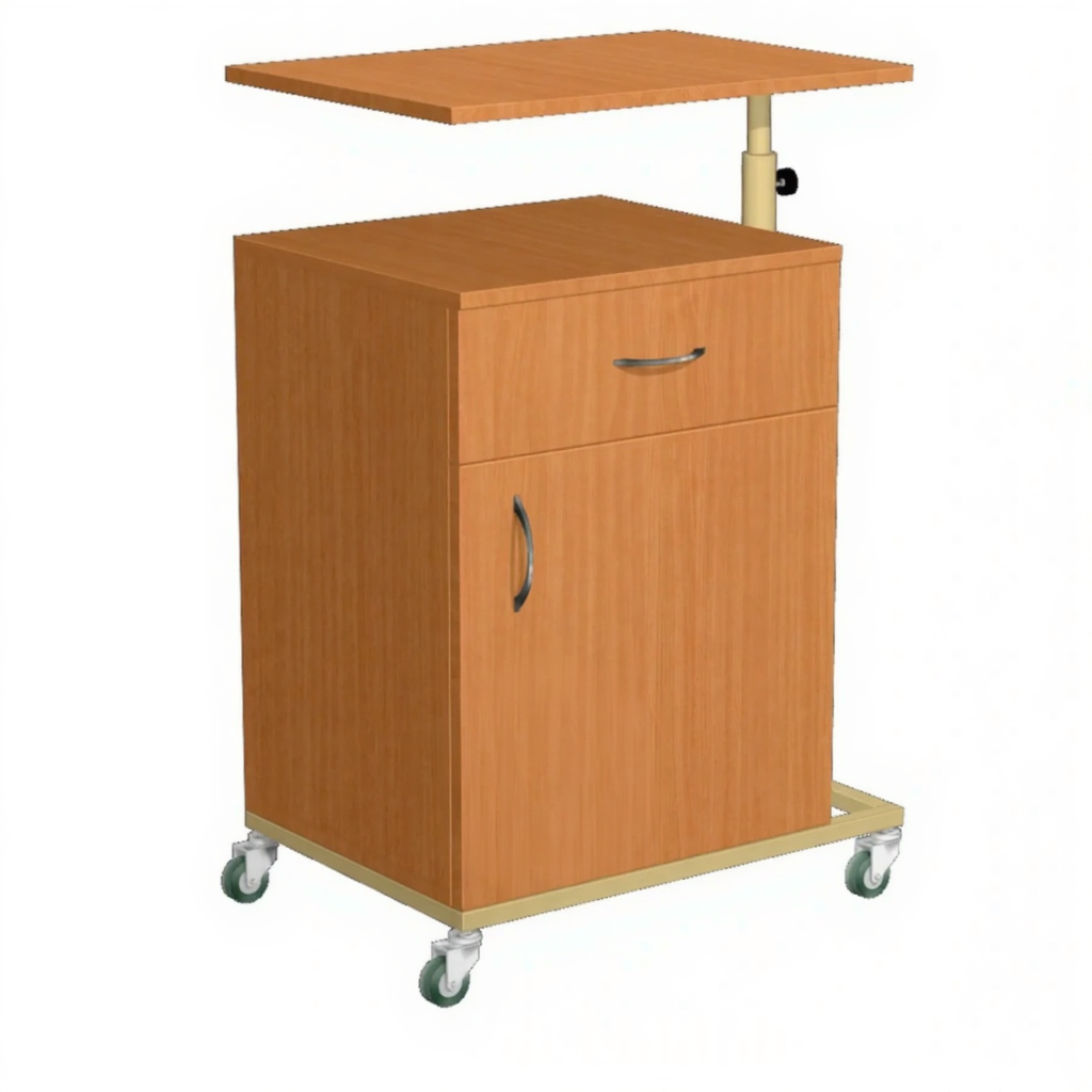 Тумба подкатная ТПМ-6 с надкроватным столиком (ЛДСП бук, каркас бежевый) один из самых мобильных и практичных видов медицинской мебели. Предназначена для хранения личных вещей, одежды, документы, а также могут использоваться как приставной элемент мебели у рабочего стола или кровати.