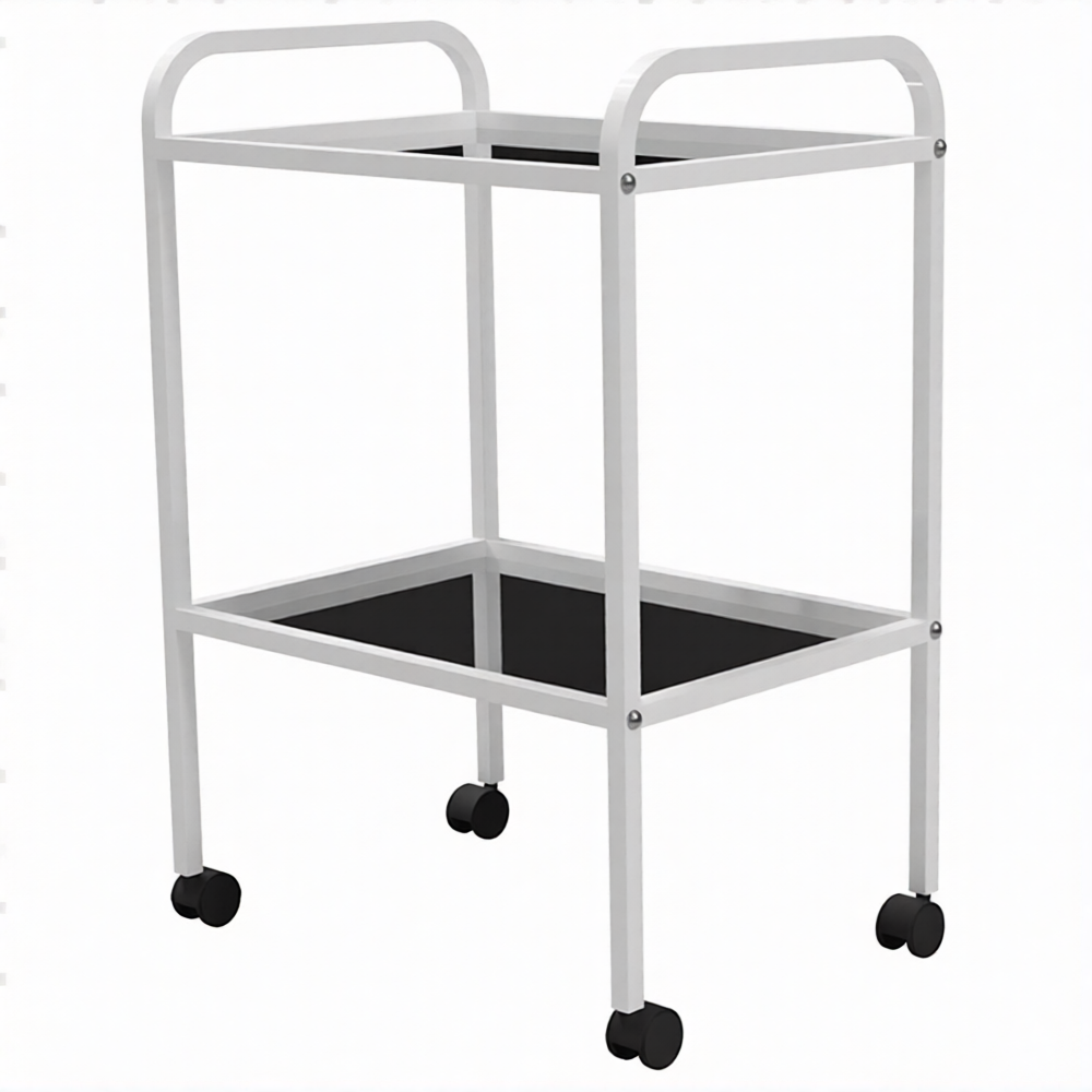 Стол медицинский инструментальный СМИ-02 (полки металл, колёса серая резина) предназначен для размещения инструмента, лекарственных препаратов и приборов.