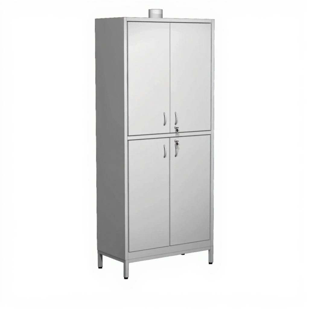 - Двухсекционная конструкция — верхняя и нижняя секции с отдельными дверками и замками для удобного разделения реактивов.
