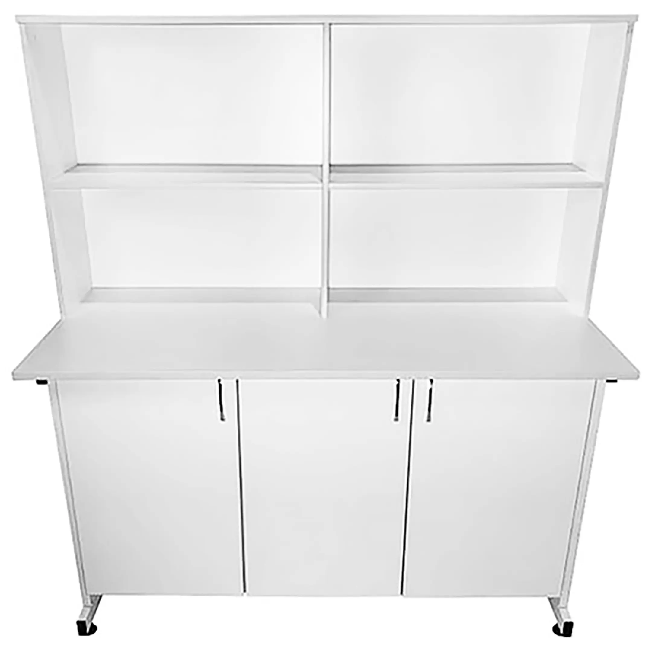 Стол-тумба лабораторная СТл 18.009 с надстройкой (белый) — это идеальное решение для организации рабочего пространства лаборанта, занимающегося проведением химических исследований и нуждающегося в хранилище для различных предметов. Модель оснащена слева отделением с распашной дверкой и полкой, справа — отделением с двойными распашными дверцами и полкой, а также надстройкой с четырьмя нишами. Каркас выполнен из стального профиля, столешница из ЛДСП толщиной 22 мм.