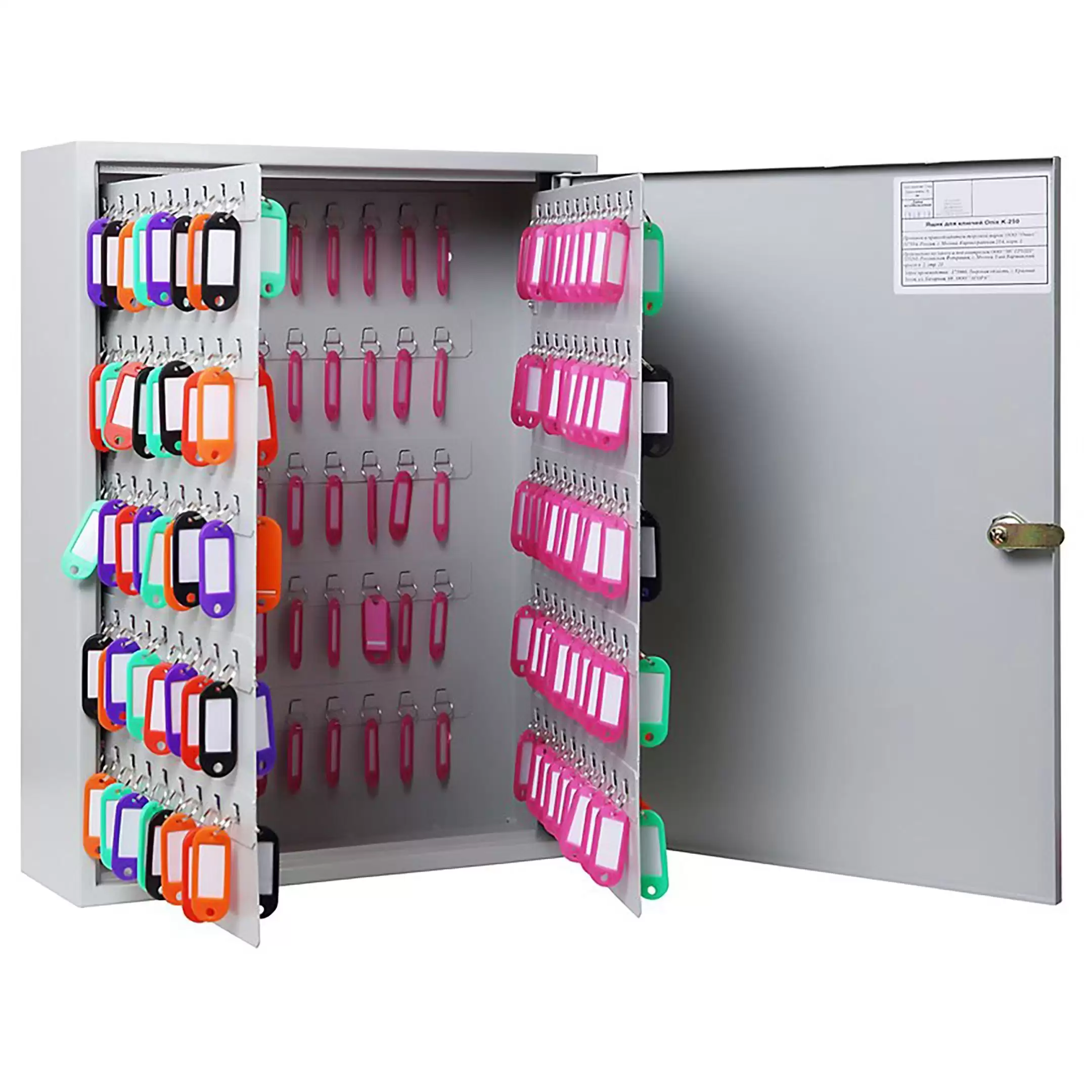 Ключница K-250 (с брелками) — это премиальная и высокопроизводительная система для организации и безусловного контроля самого обширного ключевого хозяйства на крупнейших объектах. Модель K-250 является флагманской в линейке, обладает наивысшей вместимостью, комплектуется расширенным набором брелков и отличается безупречным качеством изготовления, что позволяет осуществлять централизованное, безопасное и предельно упорядоченное управление тысячами ключей. Ключница предназначена для установки высочайших стандартов безопасности, порядка и оперативности доступа в критически важных центрах контроля.