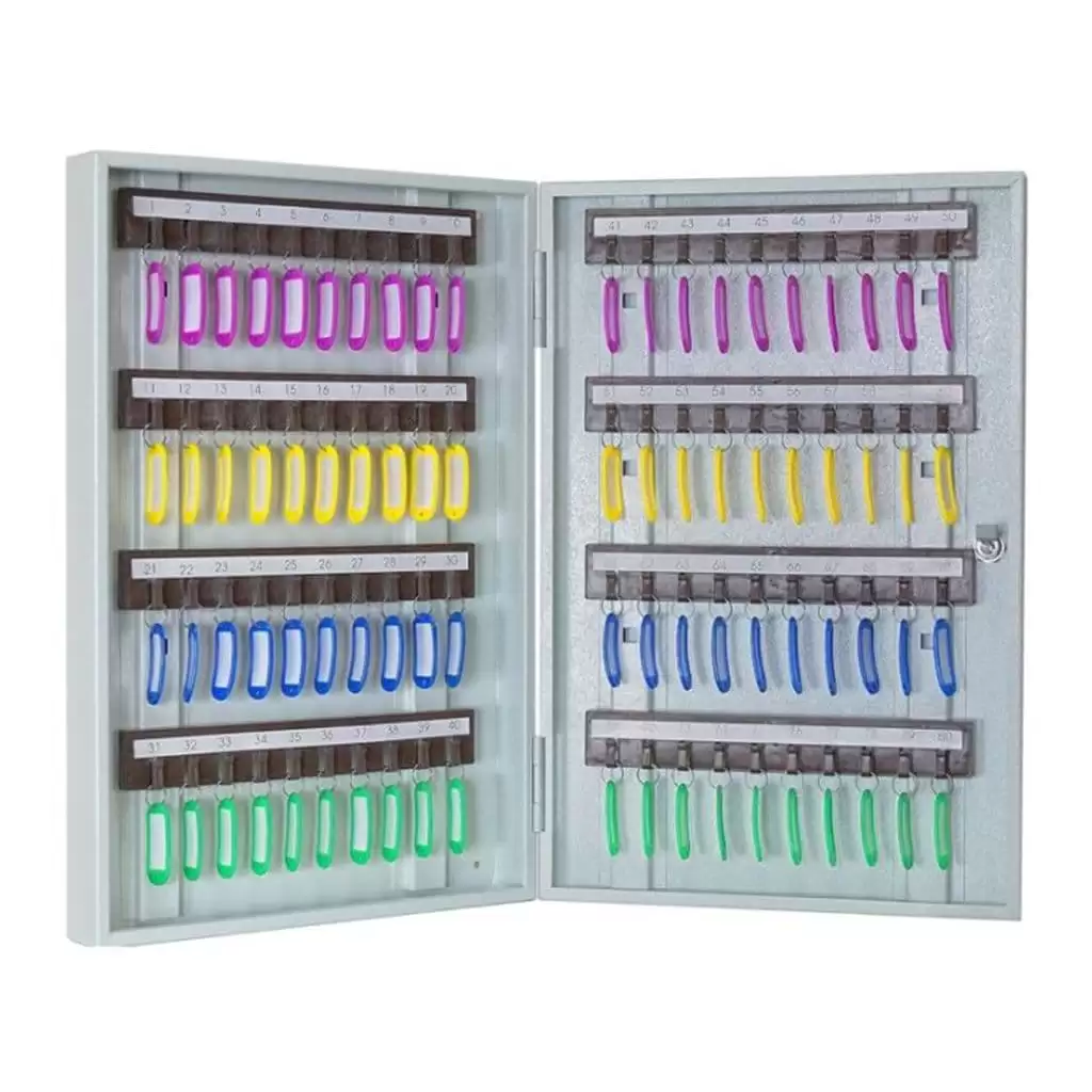 - Готовая система для комплексного учета и быстрого поиска — восемьдесят пронумерованных ячеек и комплект соответствующих брелков создают четкую и прозрачную систему. Это позволяет сразу начать ведение детального журнала учета, мгновенно находить требуемый ключ и контролировать их движение между ответственными лицами, минимизируя ошибки и простои.