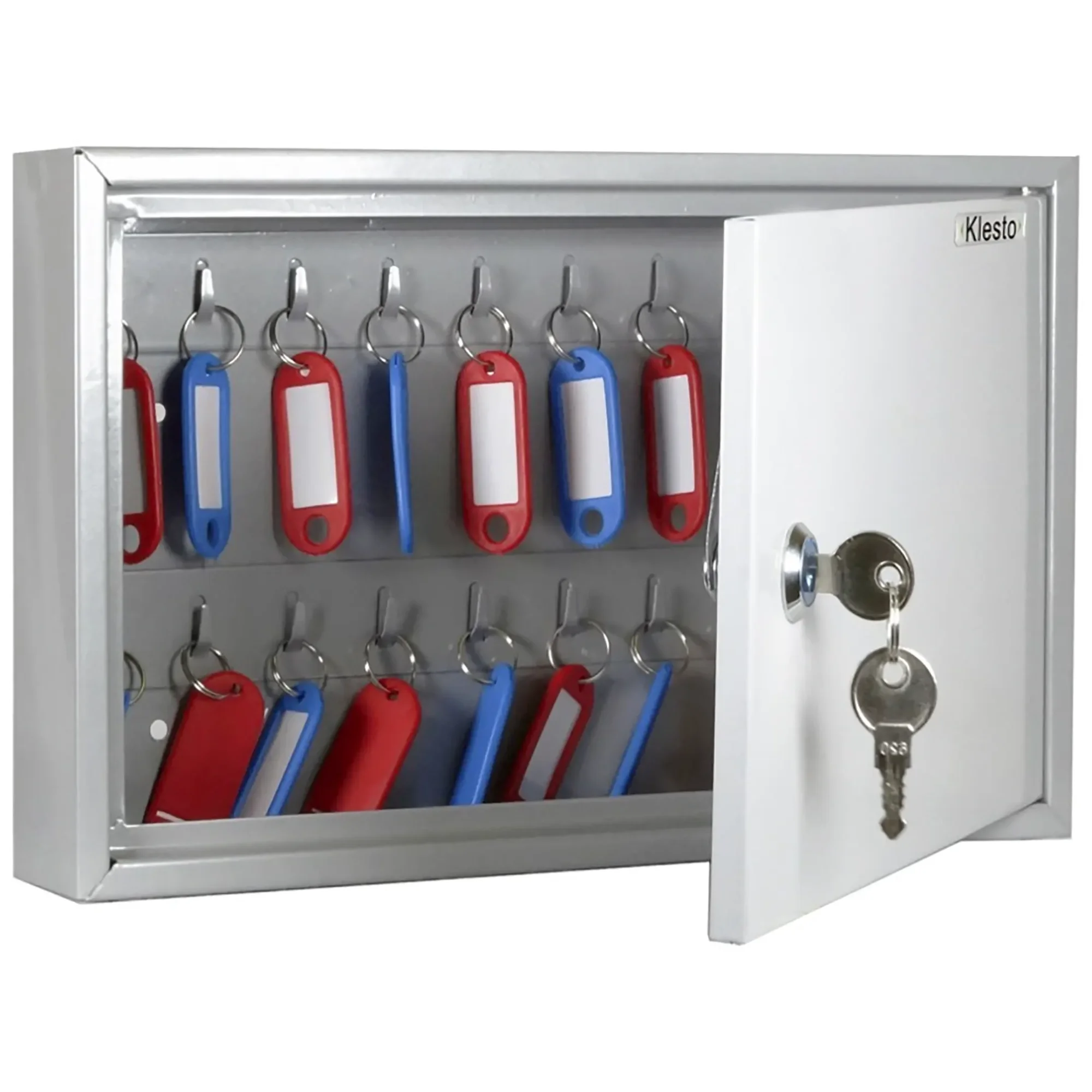 - Компактные габариты и точная вместимость — шкаф рассчитан на хранение 20 ключей, что является идеальным решением для мест, где требуется организовать строгий учет ограниченного, но важного набора ключей: от служебных помещений и сейфов до оборудования и личных шкафчиков. Его небольшие размеры позволяют легко разместить шкаф на стене в кабинете, на посту вахтера или у администратора.