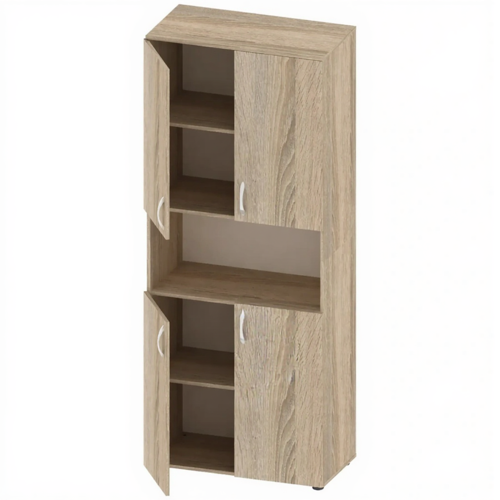 Шкаф с дверцами и нишей ШК-АД-117-1 — это функциональное и вместительное решение для хранения документов, книг и канцелярских принадлежностей в образовательных, офисных и административных учреждениях. Модель имеет комбинированную конструкцию с закрытым отделением и открытой нишей, изготовлена из качественной ЛДСП толщиной 16 мм с регулируемыми опорами.
