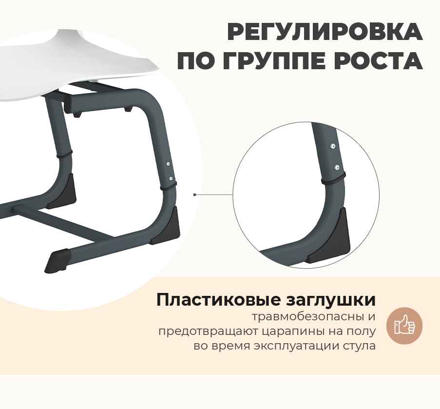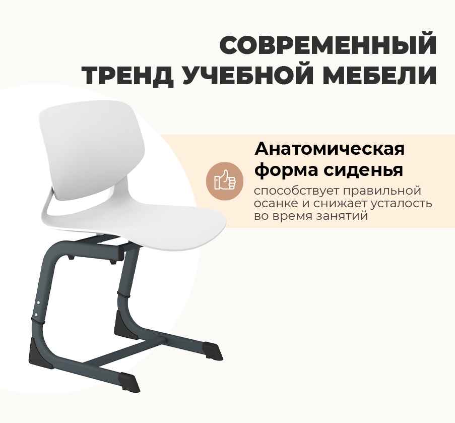 Стул ученический SHT-S-TN26/5-7 — современная и эргономичная модель, предназначенная для учеников 5–7 группы роста. Изделие сочетает прочный металлический каркас в оттенке «антрацит» и пластиковое сиденье с белой спинкой, создавая стильный и универсальный вид, подходящий для любого учебного интерьера. Конструкция отвечает требованиям ГОСТ 11015-93 и обеспечивает комфортную посадку при длительных занятиях.