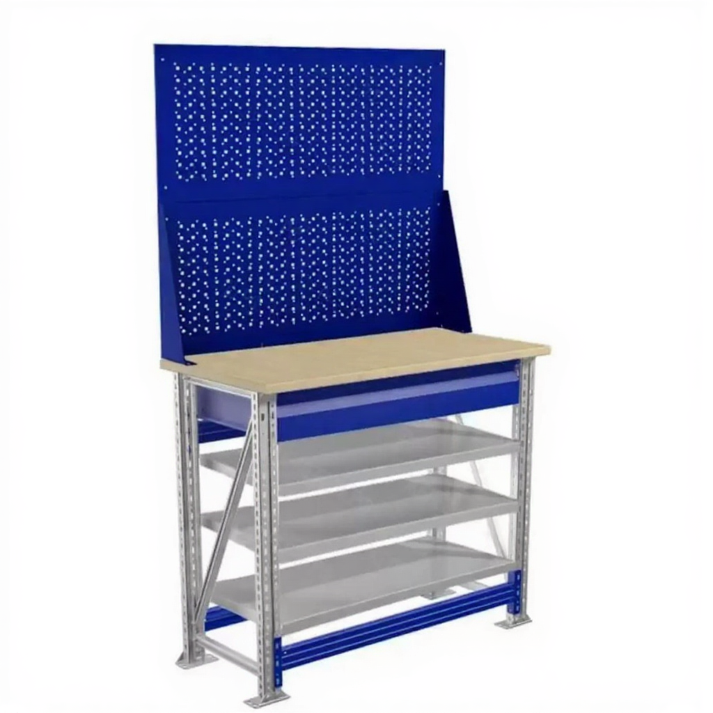 - Компактные размеры — столешница 1000х500 мм позволяет разместить верстак даже в небольших помещениях.