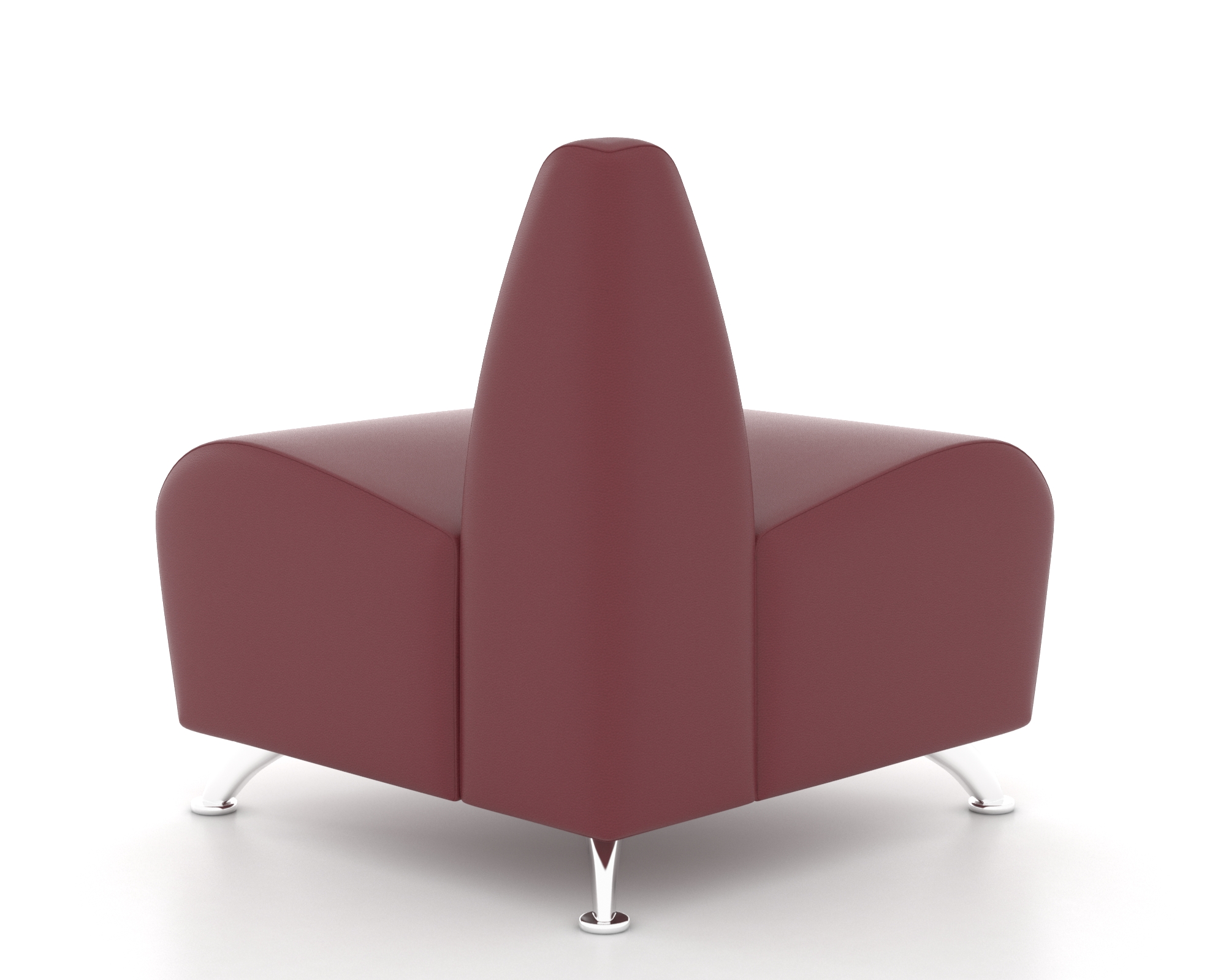 Угловая форма конструкции позволяет рационально использовать площадь помещения, обеспечивая дополнительную зону отдыха или рабочую площадку. Материалы хромированного цвета добавляют помещению современности и стильности, гармонируя практически с любыми типами интерьеров. Наружный модуль оснащен мягкими вставками, способствующими созданию атмосферы комфорта и удобства для посетителей.