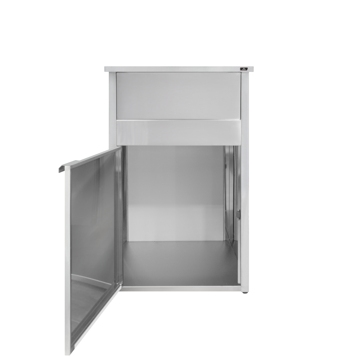 Урна для фуд-корта Atesy УФ-610/1065 предназначена для сбора мусора в залах приема пищи заведений быстрого питания. Столешница урны предназначена для сбора грязных подносов. С фасадной стороны сверху расположено отверстие для сброса мусора, закрытое качающейся дверцей.