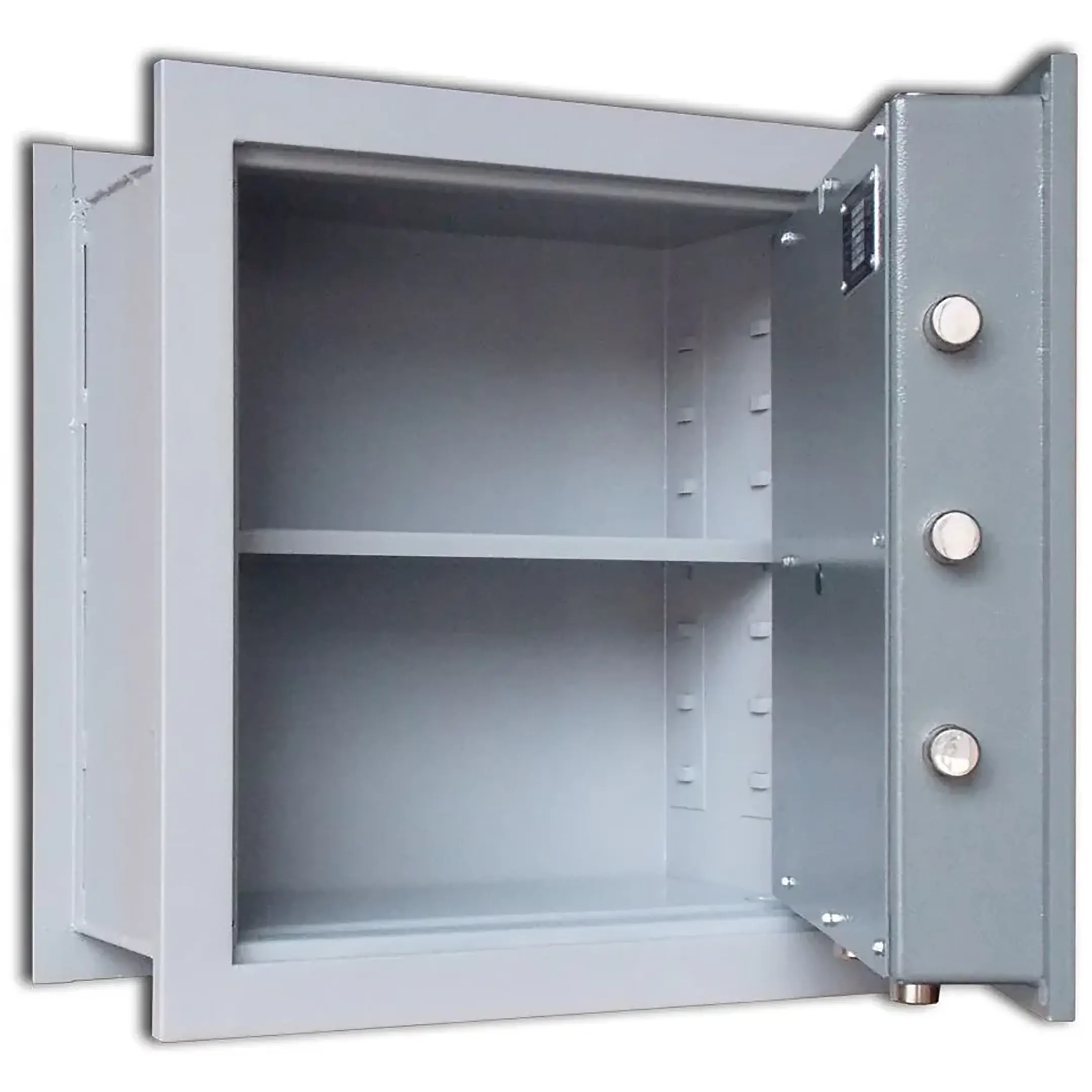 - Вместительный встраиваемый сейф первого класса взломостойкости, с ключевым замком и полочкой;