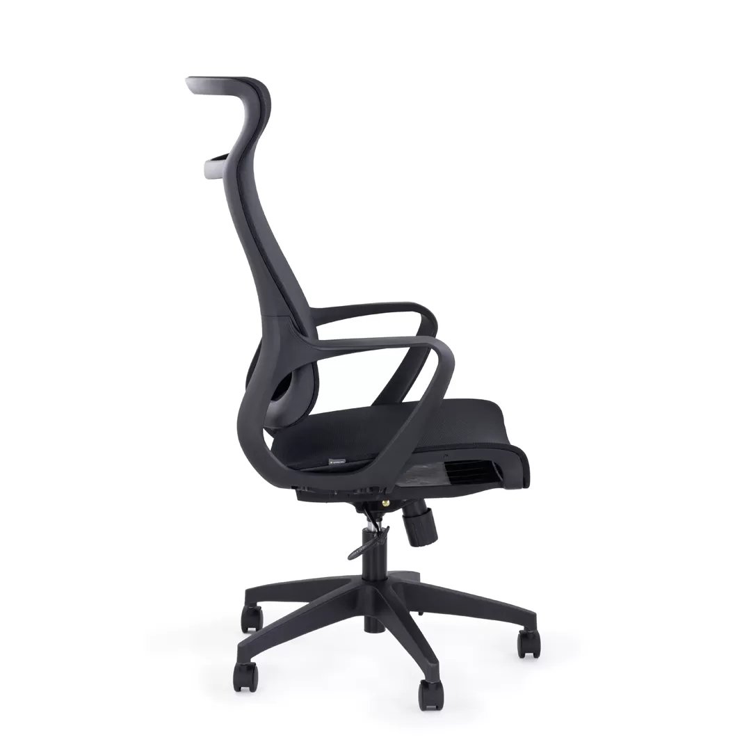 - Современный дизайн — черный каркас и лаконичные линии создают аккуратный, стильный и профессиональный внешний вид кресла.