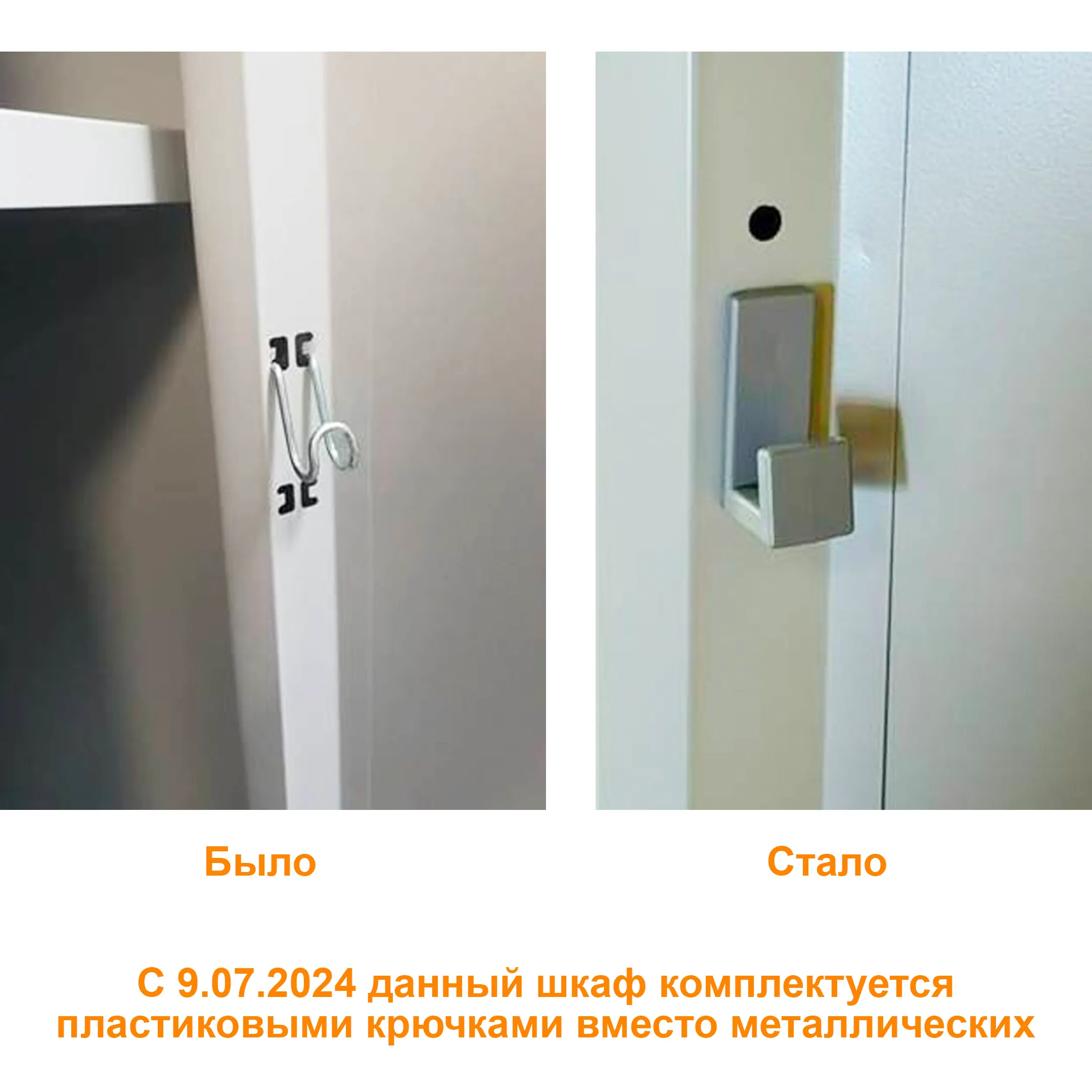 Обратите внимание: с 9.07.2024 на двери данного шкафа устанавливаются пластиковые крючки вместо металлических (показано на фото).