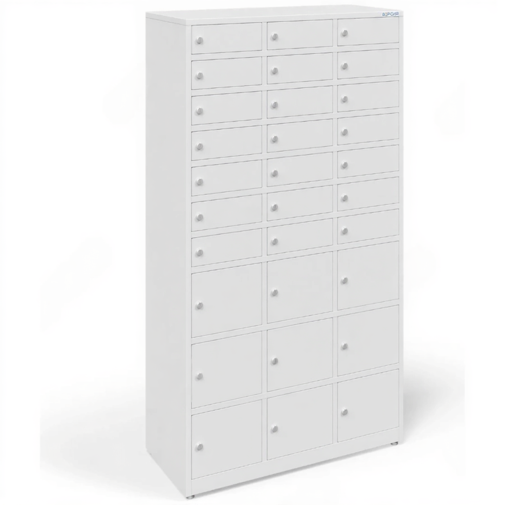 - Оптимальная вместимость для стандартной группы — шкаф предоставляет 30 индивидуальных запирающихся ячеек, что идеально соответствует численности среднего школьного класса, учебной группы в колледже или сотрудников отдела. Это позволяет централизованно хранить устройства всего коллектива, обеспечивая единый подход и упрощая контроль.
