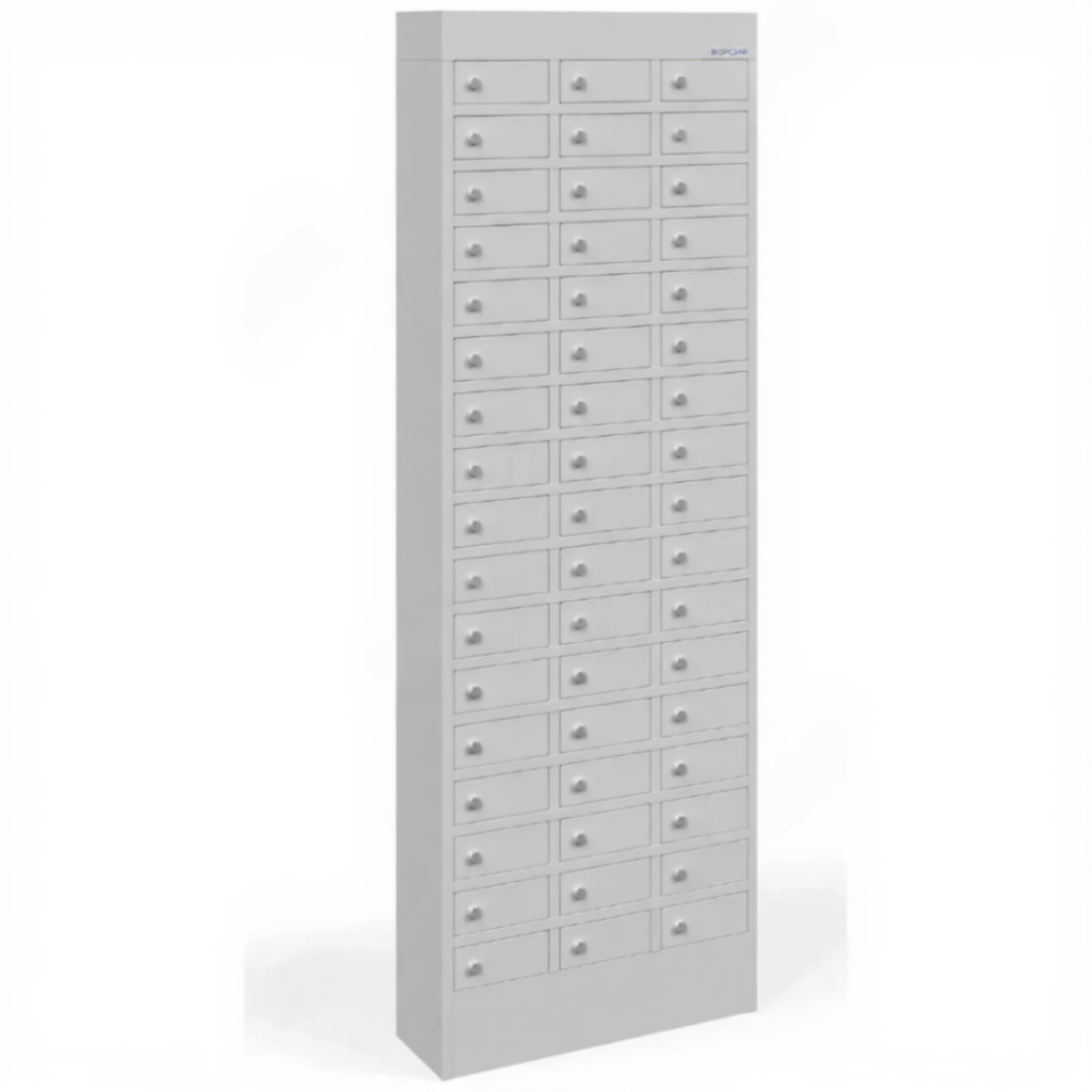 - Большая вместимость для коллективного использования — шкаф предоставляет 51 индивидуальную запирающуюся ячейку, что делает его идеальным для хранения устройств целого производственного цеха, большой рабочей смены, нескольких учебных групп или участников масштабного семинара, полностью устраняя хаотичное хранение телефонов.