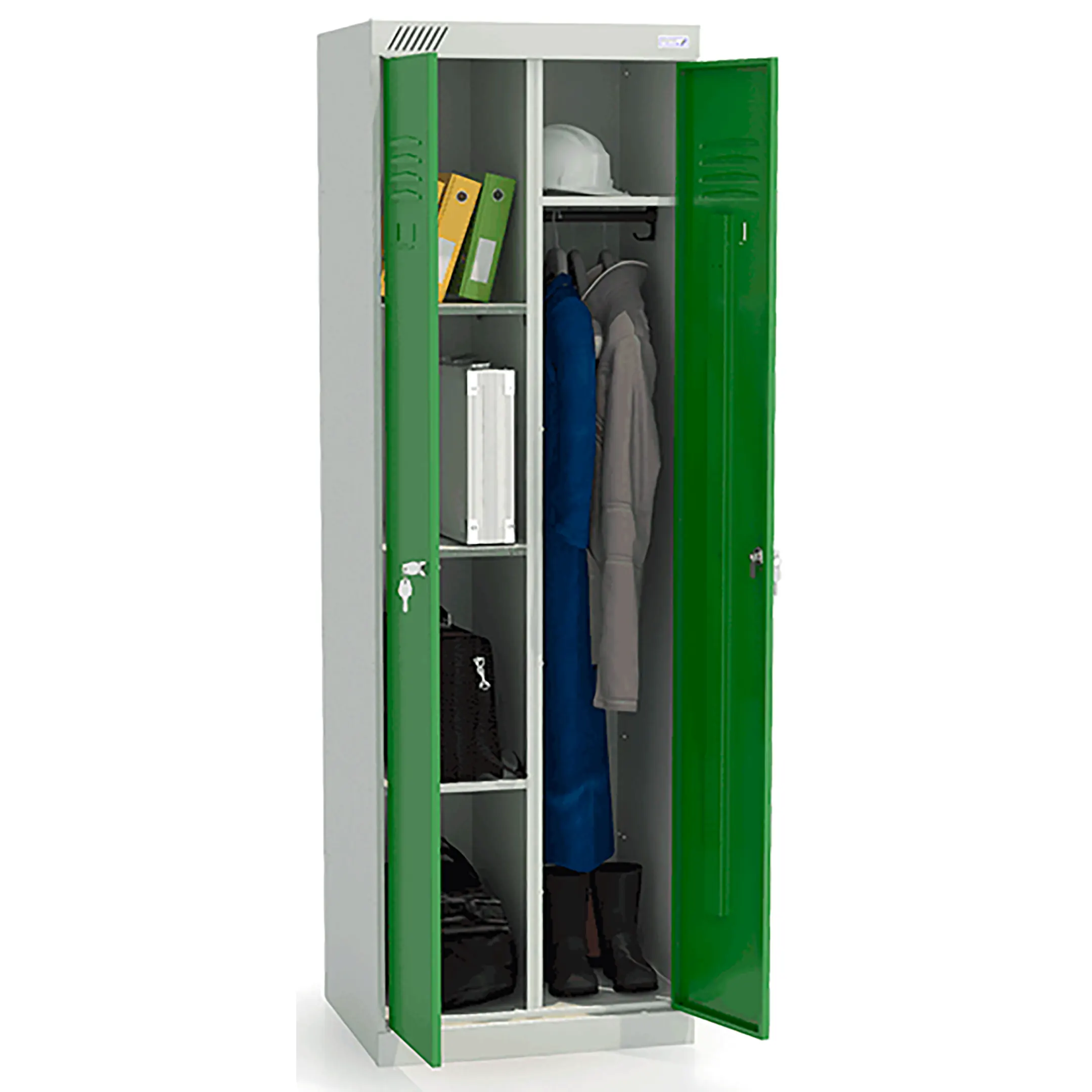 - Многофункциональность и универсальность применения — шкаф может использоваться для хранения самого разнообразного содержимого: от уборочного инвентаря и моющих средств до рабочей одежды, инструментов, учебных материалов и спортивного оборудования, адаптируясь под конкретные задачи организации.